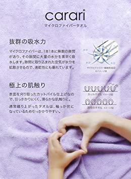 通常1-5営業日で発送:優れた吸水力と抜群の速乾性、そしてマシュマロのようなふわふわの肌触りまで叶えたマイクロファイバータオル。日常に欠かせないタオルだからこそ使い心地にこだわったcarari(カラリ)シリーズのタオル濡れた髪に軽く押し当てるだけで水分を吸収してくれるので、摩擦を減らしてダメージの軽減にも繋がります。ロングヘアの方のヘアドライはもちろん小さめのバスタオルとしても使えます【驚きの吸水力】水に触れた瞬間、サッと吸水してくれます。その吸水力はなんと綿のタオルの約3倍!マイクロファイバー繊維の毛細管現象によって、水分を素早く吸収します【抜群の速乾性】マイクロファイバーは、1本1本が放射線状の三角断面形状で無数の隙間を持っています。通気性に優れた繊維なので、高い速乾性を発揮します。洗濯物の乾きにくい時期にも快適にお使いいただけます【やさしい肌触り】通常織りあがったタオルは両面ともパイル状になっているため、引っかかりやすい。carariのタオルは表面を刈り取っているため、引っかかりにくく、上質で滑らかな肌触りに仕上げています