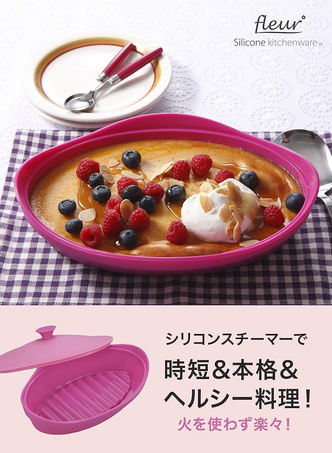3営業日以内に発送≪新品未開封品≫:シービージャパン シリコンスチーマー ピンク オーバル型 電子レンジ調理 fleurパターン(種類): スチーマー ピンク