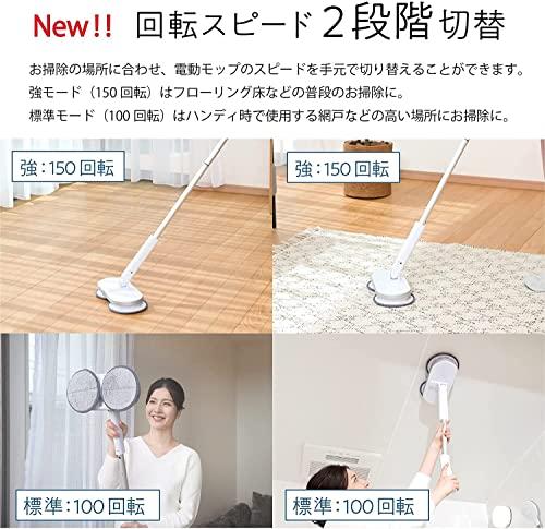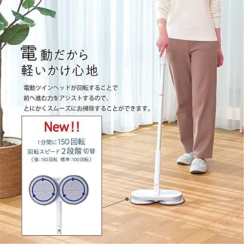 ●立ったままで拭き掃除。軽い使い心地で、らくらくキレイ! コードレスの回転モップクリーナー●スティックとハンディの2wayタイプ! 立ったままふき掃除ができるので腰への負担が軽減。また、長さを変えられるので用途に合わせてカンタン、キレイ●パワーアップで絨毯掃除が可能となりました●水だけで汚れが落ちる"キャッチモップ"を採用! キャッチモップは水に濡らして拭くだけで汚れを除去する効果がある「洗剤不要」の特殊繊維【Catchmopキャッチモップ】世界23ヵ国で販売し、シリーズ累計販売数は約1382万個を突破している信頼と実績ある特殊繊維※2012~2017年度までの実績(メーカー調べ)2015年より展開した回転モップの新モデル(汚れ除去のしくみ)キャッチモップは掃除がしにくいすき間に入り込むダブル繊維構造。コシのある繊維がこびりついた汚れをかき出し、極細繊維で絡めとる●電動式だから、しっかり拭き掃除! 電動で回転する2つの特殊繊維製モップパッドで床をしっかり拭き掃除●自走式なので操作をアシスト。モ