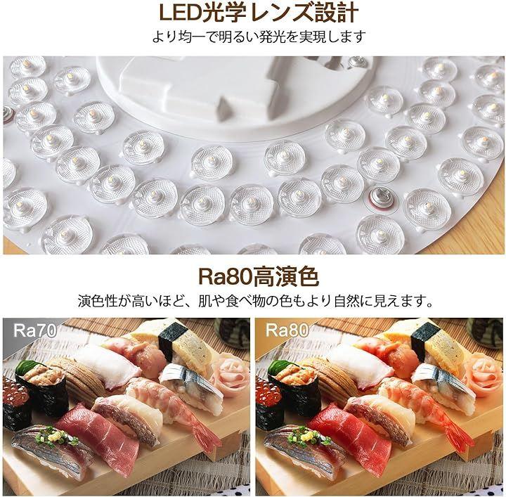 「均一発光・省エネ」当LEDシーリングライトは高発光率LED光学レンズを用いて、均一な光を実現したほか、36Wの低消費電力で約3600lmの高輝度に達し(明るさは蛍光灯の2倍、電気代は半分節約)、6畳~8畳の部屋を全方位で明るく照らします。