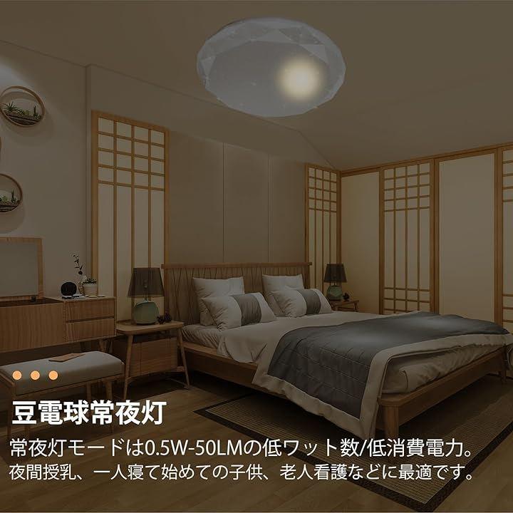 「豆電球常夜灯&消灯タイマー&明るさメモリ」常夜灯モードは0.5W-50LMの低ワット数/低消費電力。
