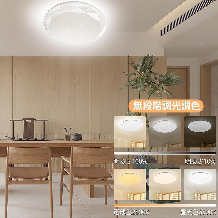 薄型シーリングライトは無段階調光調色が可能、季節や時間に合わせてライトの色と明るさを調整でき、温かく落ち着いた雰囲気を作り出せます。