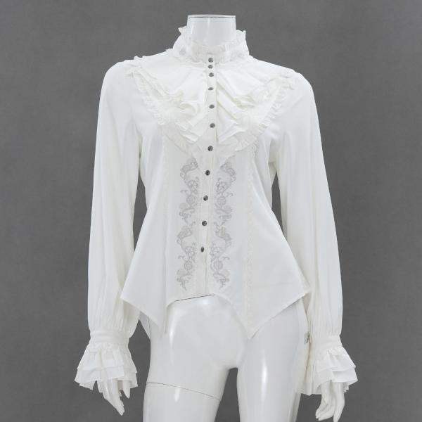 キュート&エレガントな薔薇刺繍入りフリルブラウス。