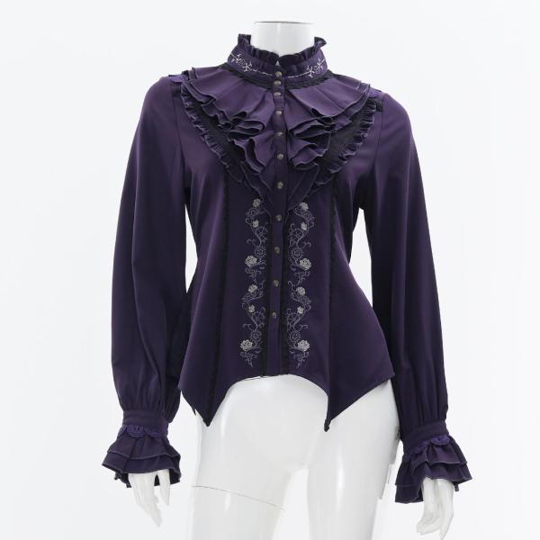 キュート&エレガントな薔薇刺繍入りフリルブラウス。