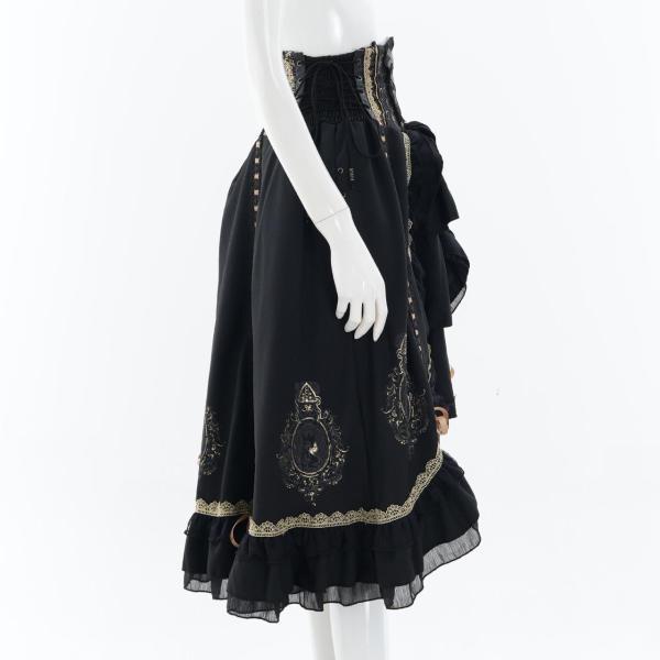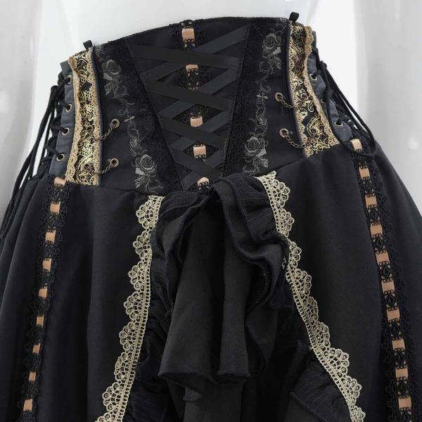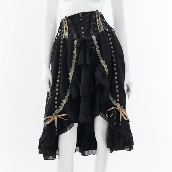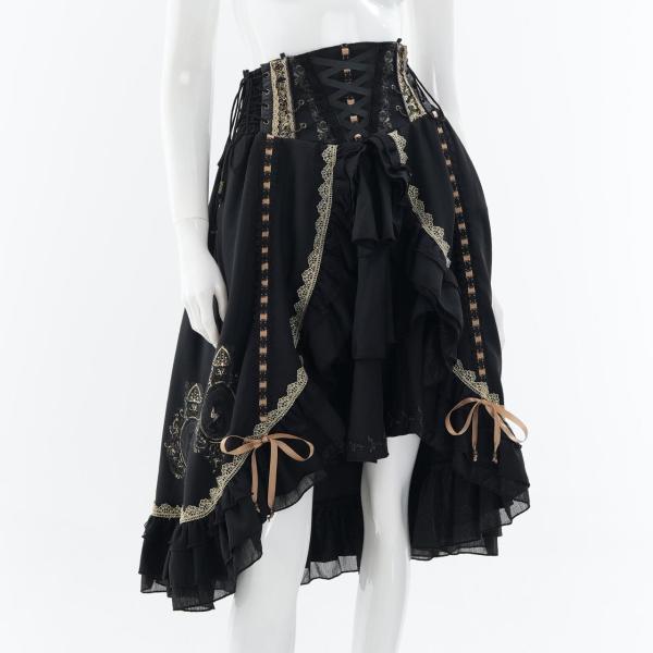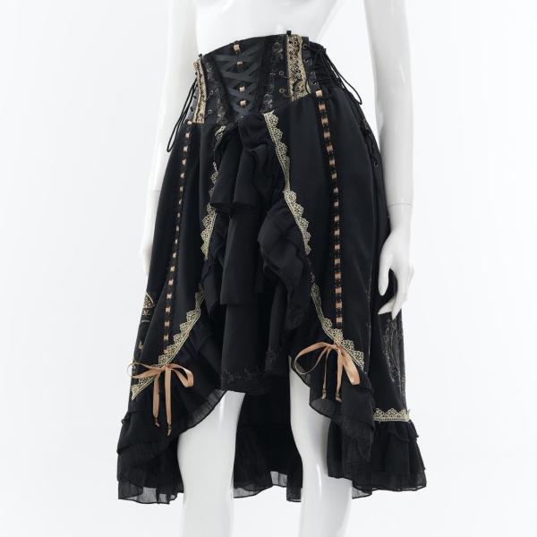 レースアップや甘めフリルが乙女心をくすぐる可憐なデザインでありながら厳かなクラシカルロリィタの要素も併せ持つ、フリルスカートです。