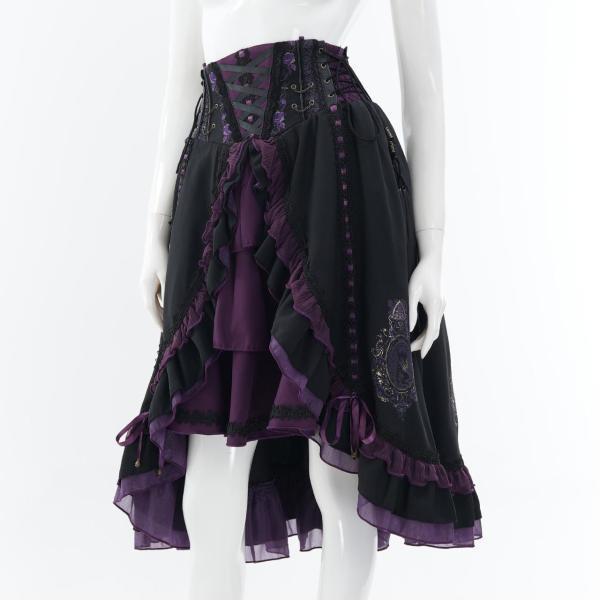 レースアップや甘めフリルが乙女心をくすぐる可憐なデザインでありながら厳かなクラシカルロリィタの要素も併せ持つ、フリルスカートです。