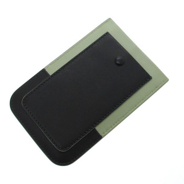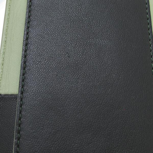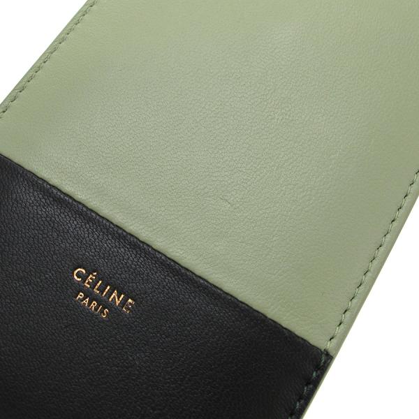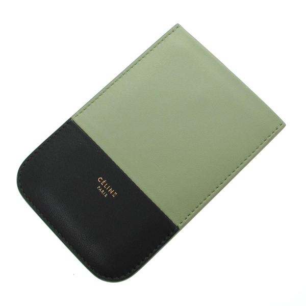 セリーヌのスマートフォンケースのご紹介です!黒とピスタチオグリーン(少しくすみのかかった黄緑色)のバイカラーの本体は、レザー素材。上部はオープンになっていて、背面にはスナップボタン式のポケット1つあり。4インチディスプレイのスマートフォン(iPhoneですとSE、5、5S、5C、)ですと入るサイズです。★状態は、表面の小傷・スレ・凹み・薄汚れ、角や縁のスレ・黒ずみ、ボタンのスレ、中の薄汚れ等がございます。その分、お買い得価格となっておりますよ! お求めの際はご使用のスマートフォンのサイズをご確認下さいませ。