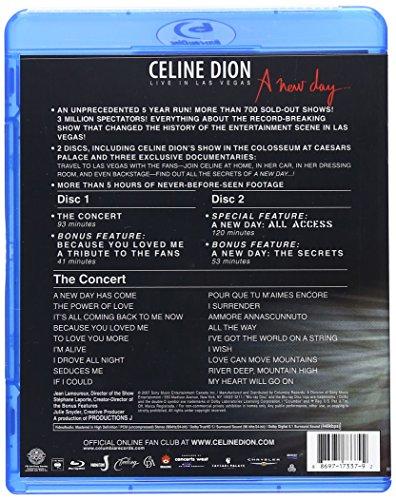 An unprecedented 5 year run! More than 700 sold-out shows! 3 million spectators! Everything about the record-breaking show that changed the history of the entertainment scene in Las Vegas! 2 discs, including Celine Dion's show in the coliseum at Caesars Palace and three exclusive documentaries. Travel to Las Vegas with the fans, join Celine at home, in her car, in her dressing room, and even backstage, find out all the secrets of a New Day/ More than 5 hours of never-before-seen footage. The Concert a New Day Has Come, the Power of Love, It's All Coming Back to Me Now, Because You Loved Me, to Love You More, I'm Alive, I Drove All Night, Seduces Me, If I Could, Pour Que Tu M'Aimes Encore, I Surrender, Ammore Annascunnuto, All the Way, I've Got the World on a String, I Wish, Love Can Move Mountains, River Deep, Mountain High, My Heart Will Go on.