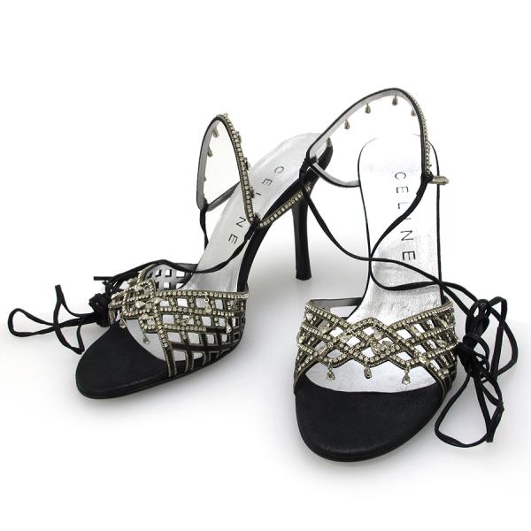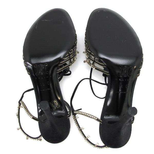 ■採寸#36 日本サイズ:約23cm 甲幅7.5cm ヒール高さ9cm ■素材表記なしセリーヌからサンダルが入荷しました。甲部分や足首部分にキラキラと装飾がデザインされており、高級感溢れる一足☆金具部分全体的に黄ばみやくすみが見受けれます。紐クセがありますが外履き感は見受けられなく通常使用には問題ないと思われます◎ダメージの分大変お買い得になっておりますので是非お気軽にお問い合わせください♪