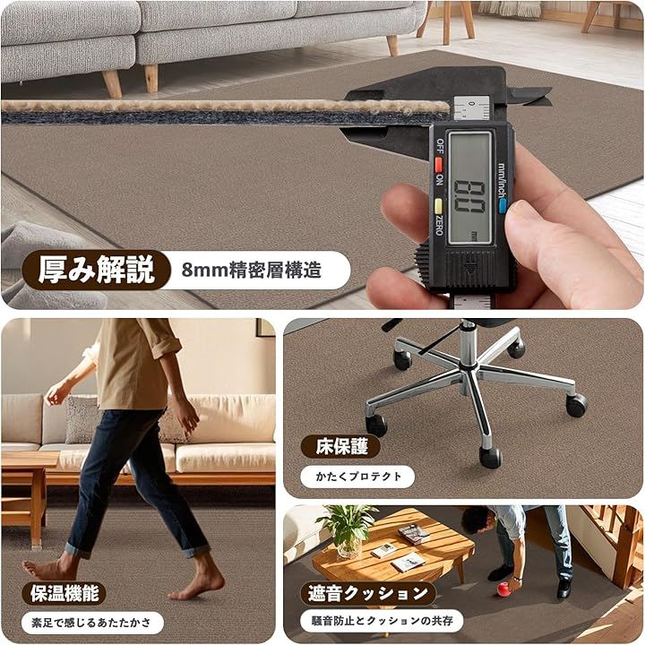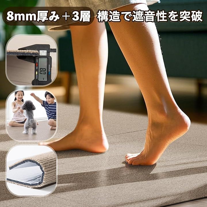 厚みを活かした防音・保温効果で、足音やフローリングの冷たさをしっかりカバー。