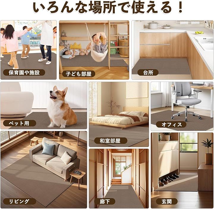 4.「適応性が広い」適応性が広い:高品質の材質で作られマットは、いろんな場所で使える。(1)リビング。