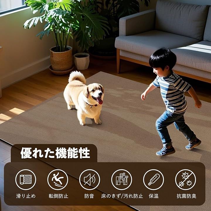 適度なクッション性で足腰への負担を軽減し、ペットや子供の転倒時の衝撃もやわらげます。
