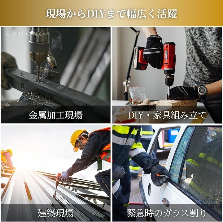 「多様な素材・シーンに対応する設計」鉄、アルミ、銅などの金属から、木材、プラスチック、さらには硬いセラミックタイルまで幅広く対応。