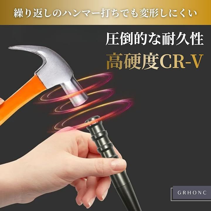 耐衝撃性に優れており、繰り返しのハンマー打ちでも変形しにくい強靭な設計により、ハードな使用環境下でもパフォーマンスを発揮します。