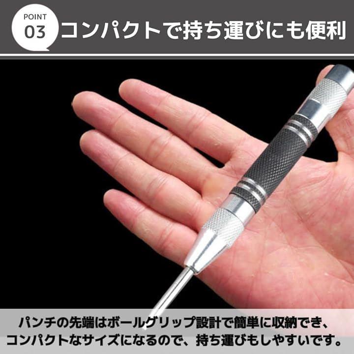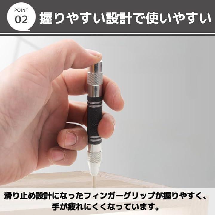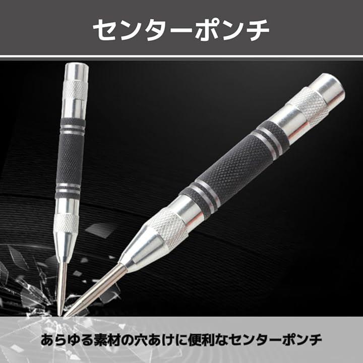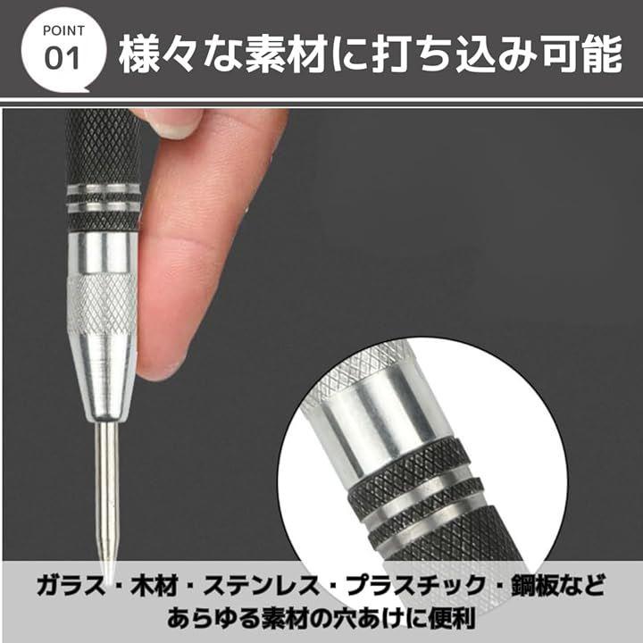 「様々な素材に打ち込み可能」ガラス・木材・ステンレス・プラスチック・鋼板などあらゆる素材の穴あけに便利なセンターポンチ。
