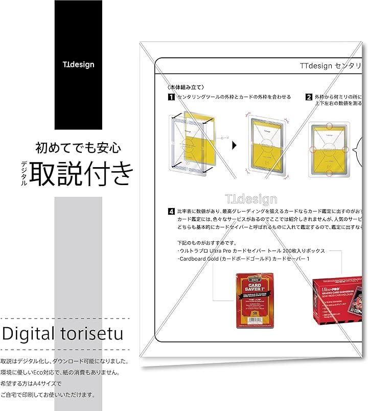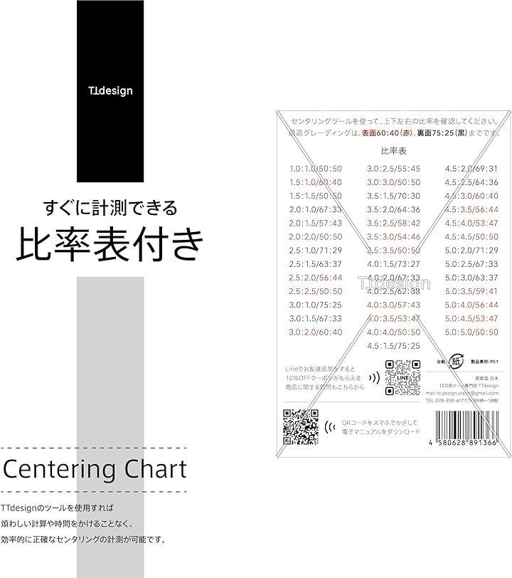 トレーディングカードのレギュラー(63x88mm)に対応しており、センタリングを正確に計測できるツールです。