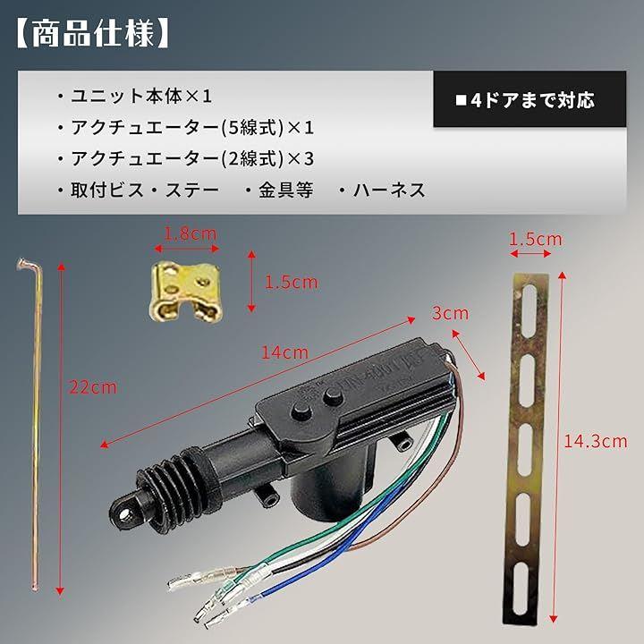 「12V汎用タイプ・幅広い車種に対応」4ドアセット。12V車用アクチュエーター。