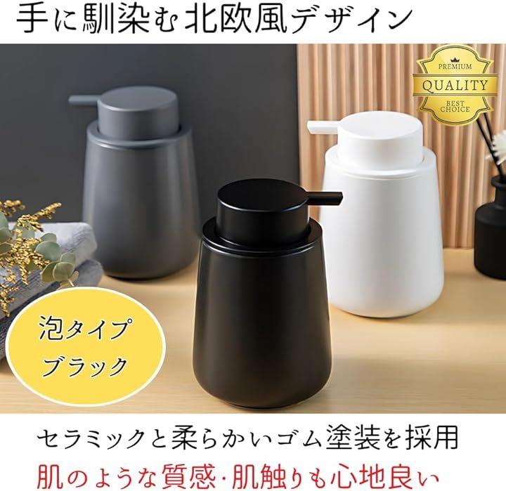 「手に馴染む使いやすい北欧風デザイン」セラミックと柔らかいゴム塗装を採用した泡タイプのハンドソープボトル。