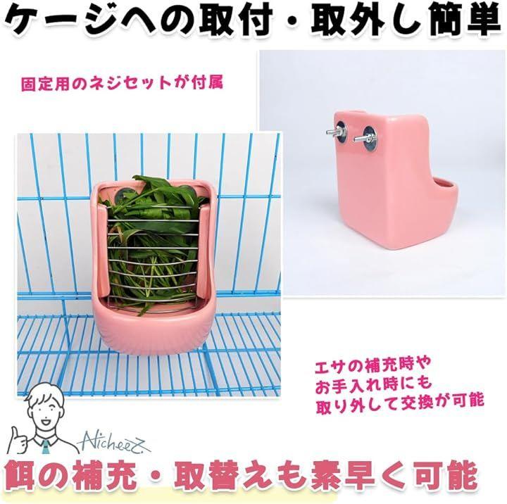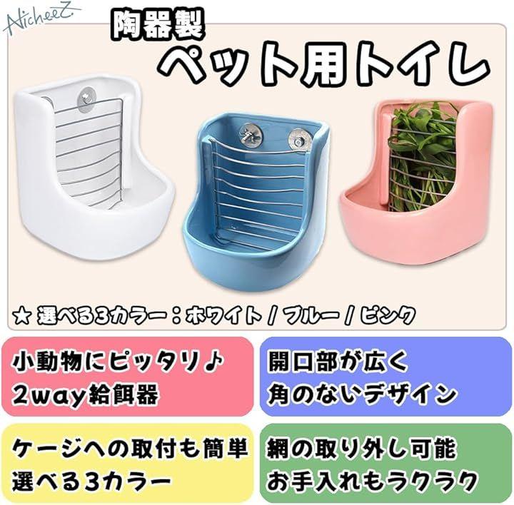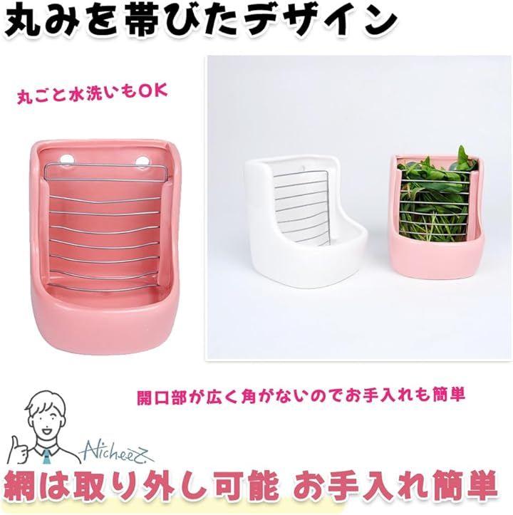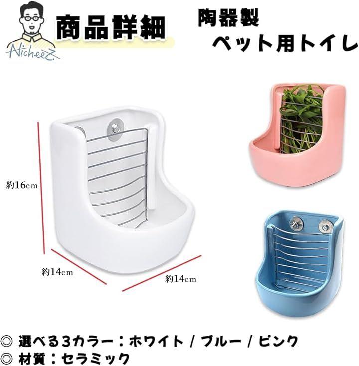 「商品内容」 ウサギ用陶器製牧草ポット 材質:セラミック カラー:ホワイト/ブルー /ピンク サイズ:幅/約14cm 奥行き/約14cm 高さ/約16cm 餌台高さ/約6cm