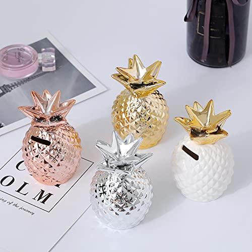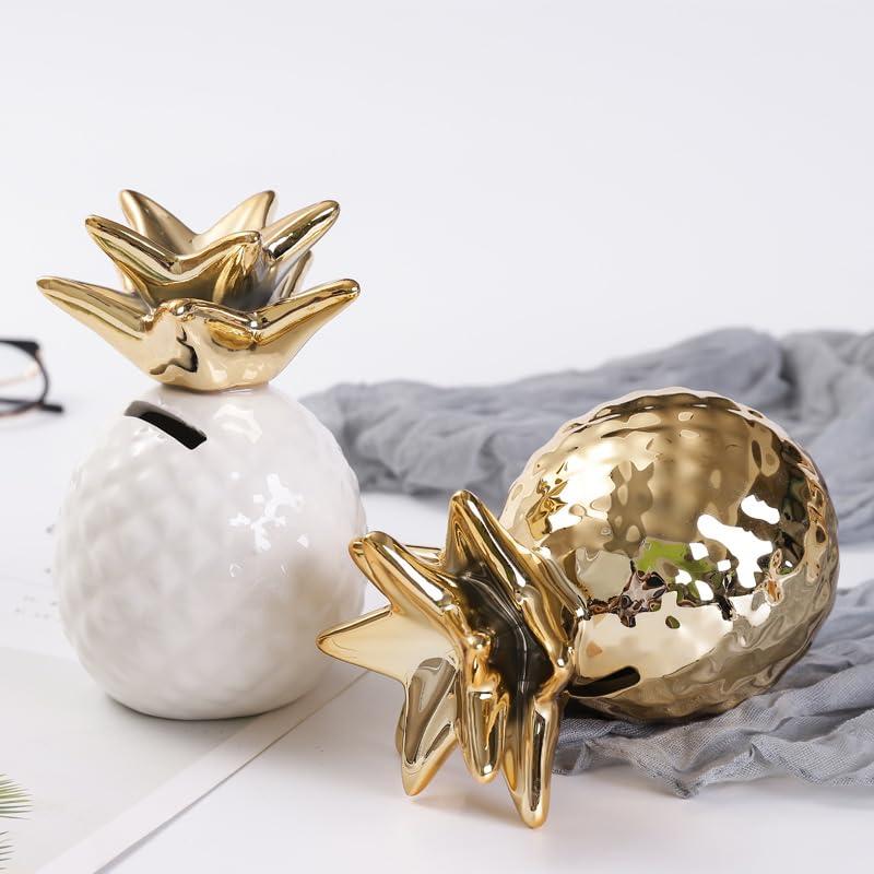 Ceramic pineapple piggy bank, golden pineapple decorative ceramic pineapple statue, desktop pineapple ornament, ceramic pineapple-shaped tin, bale
