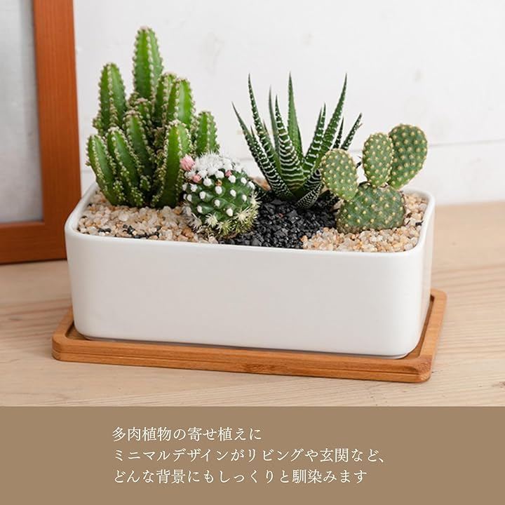「空間に溶け込むホワイトと木目」 お気に入りの多肉植物やサボテンを、より魅力的に飾りたい方のためのプランターセットです。
