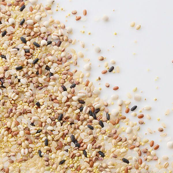 玄米、丸麦、白米、発芽玄米、はだか麦、もち玄米、緑米、黒米、赤米、もち麦、はと麦、もちあわ、うるちひえ、もちきび、たかきび
