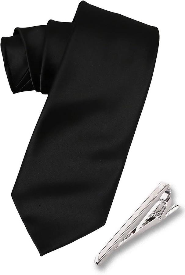 弔事用の本格ネクタイとシンプルなタイピンのセットとなります。