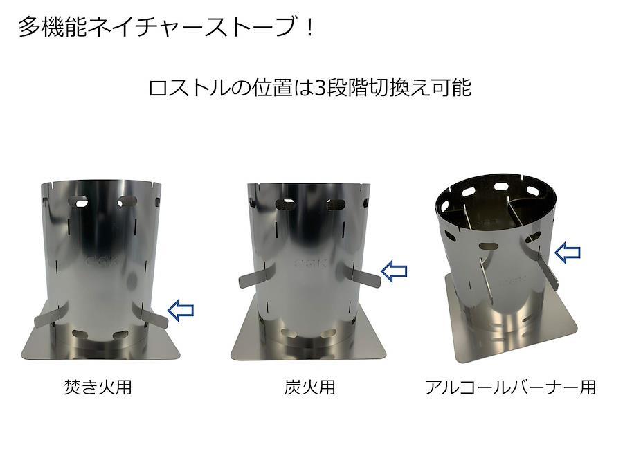★【ミニマルデザイン】★ ソロ用として最小限の機能とベストなサイズ。直径15cm、高さ約20cm。小さすぎず、大きすぎず。焚き火ができて調理もし易いネイチャーストーブです。★【軽量・コンパクト】★ 非常にコンパクトになるソロ用ネイチャーストーブです。収納サイズはB5サイズの厚さ1㎝程度なのでザックに入れて山にでも持っていけます。キャンプツーリングにも最適。重量は収納時で約570g。★【多用途仕様】★ 焚火台の他、調理コンロ・炭火コンロ・アルコールバーナーの五徳用としても使える多機能仕様。炭を使えば七輪のような感覚で使用できます。エコココロゴス・ラウンドストーブ1個が丁度良く収まります。★【高燃焼効率】★ 二次燃焼機能はありませんが、十分な燃焼効率を確保しています。ほとんど燃え残りがありません。★【素材・耐久性】★ オールステンレス製。本体外側の薄板は0.2mm。薄いけれど小さめのダッチオーブンを載せても大丈夫。ゴトク、ロストルは厚さ1.5mmを採用。
