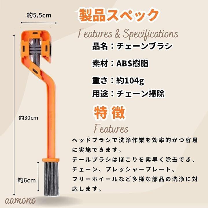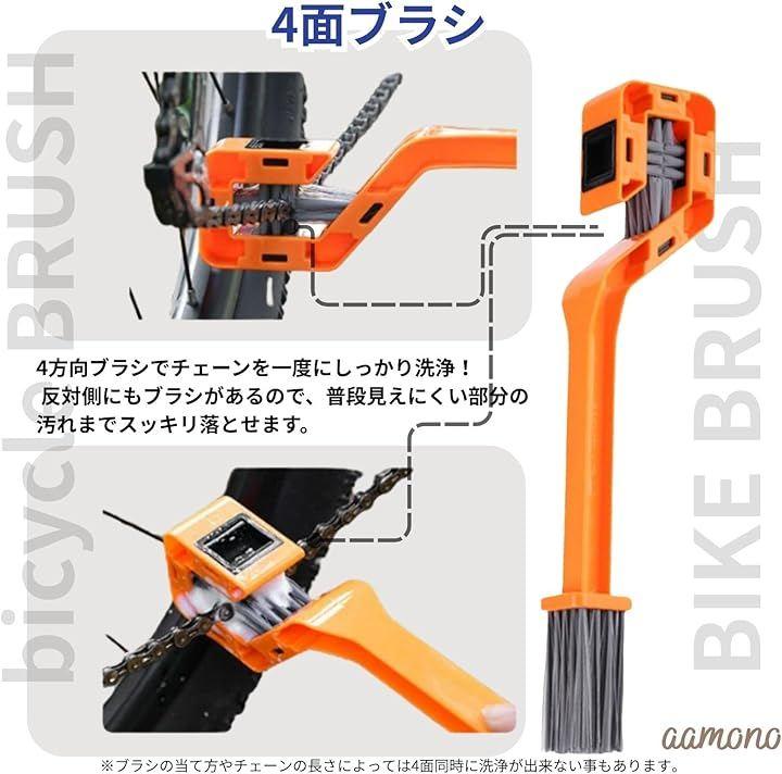 「多機能クリーニング性能効率的な2in1デザイン」 「4面剛毛ブラシ」により、チェーン全体(表・裏・側面・隙間)をスピーディーに洗浄。