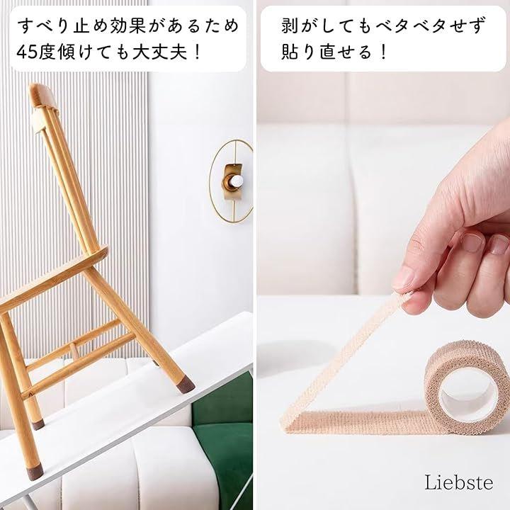 「滑り止め効果」自着性テープが施されているため、椅子の脚にしっかりと固定され、滑り止め効果を発揮します。