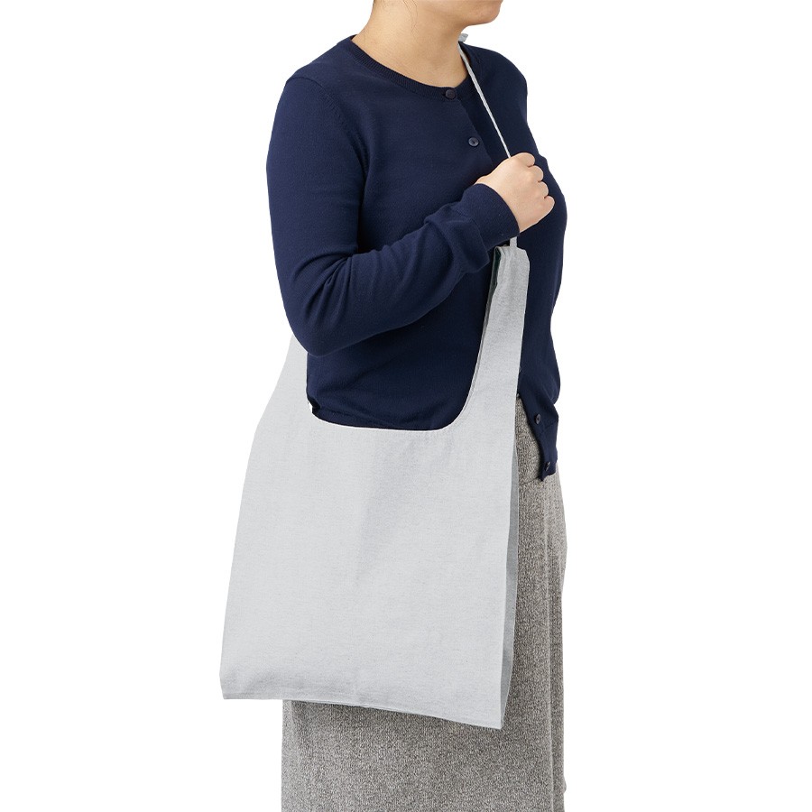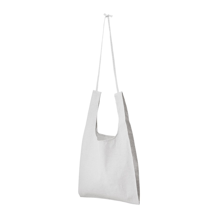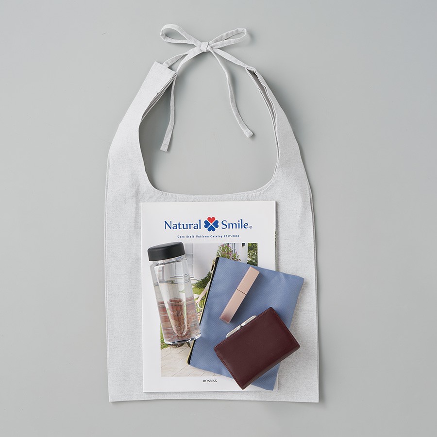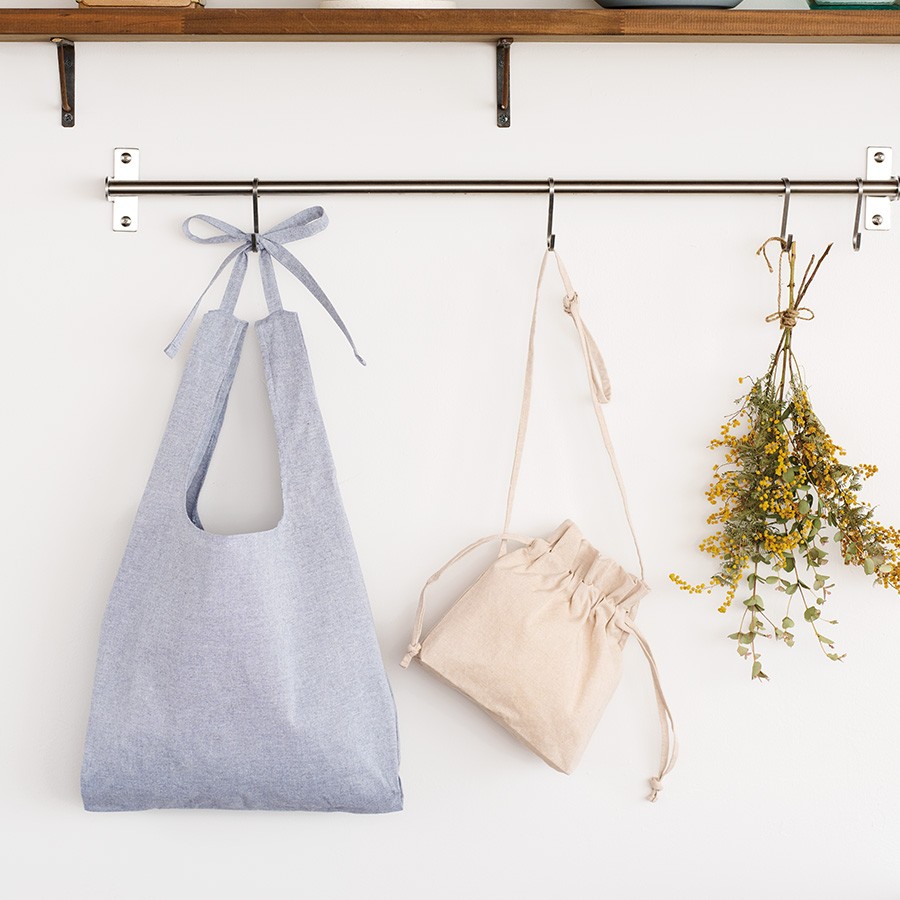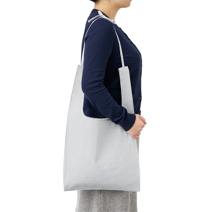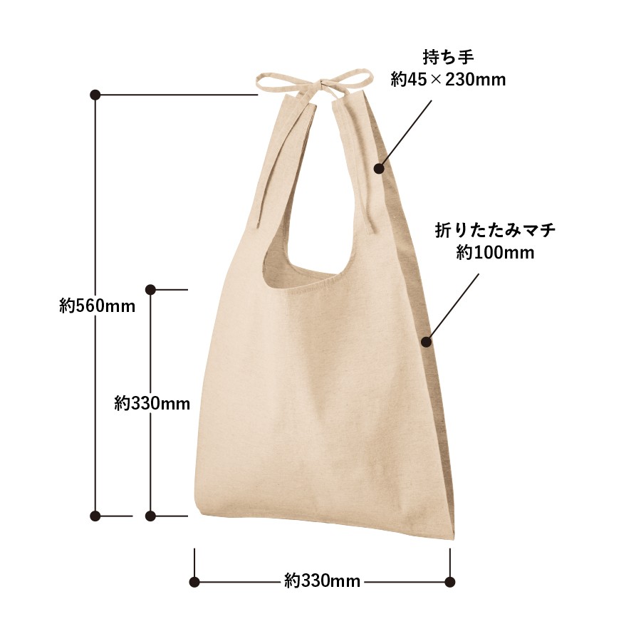 紐付きで便利な人気のマルシェ型バッグです。ハンドル部分についた紐の長さを調整することで、3パターンの使い方を楽しめます。紐を短めに結んで手持ちに、紐を長めに結べば肩掛け、ショルダーにと用途に合わせて変更できます。A4サイズが入るちょうど良いサイズ感で、荷物もしっかり入れていただけます。シャンブリック素材を使用した、グレー・ベージュ・サックスブルーのさわやかな3色展開です。フルカラー印刷対応なので、ノベルティとしてはもちろん、購入特典の限定ショッパーや物販品にもおすすめです。