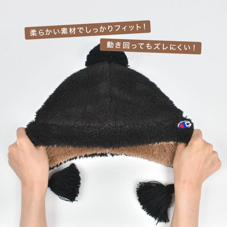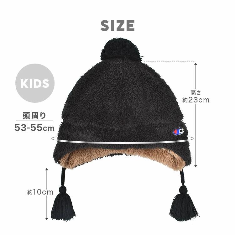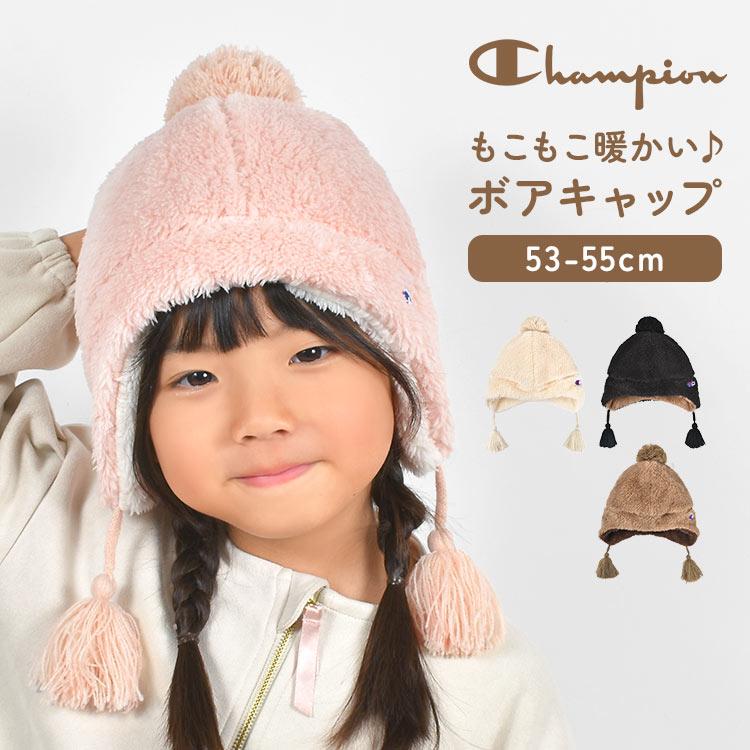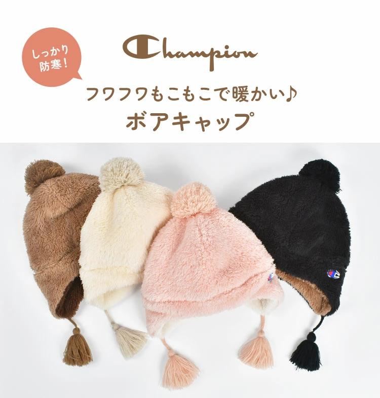 【ボアウィンター】ポンポンがくまのお耳みたいに見えるchampionのキッズボアウィンター。毛足の長いふわふわしたボア生地で被り心地も見た目もあたたか♪耳当て付きで真冬の通園通学やおでかけにもぴったり!保育園児から小学校低学年におすすめです♪