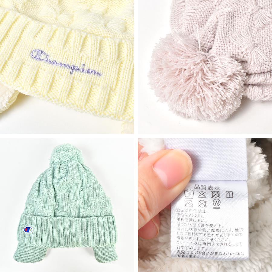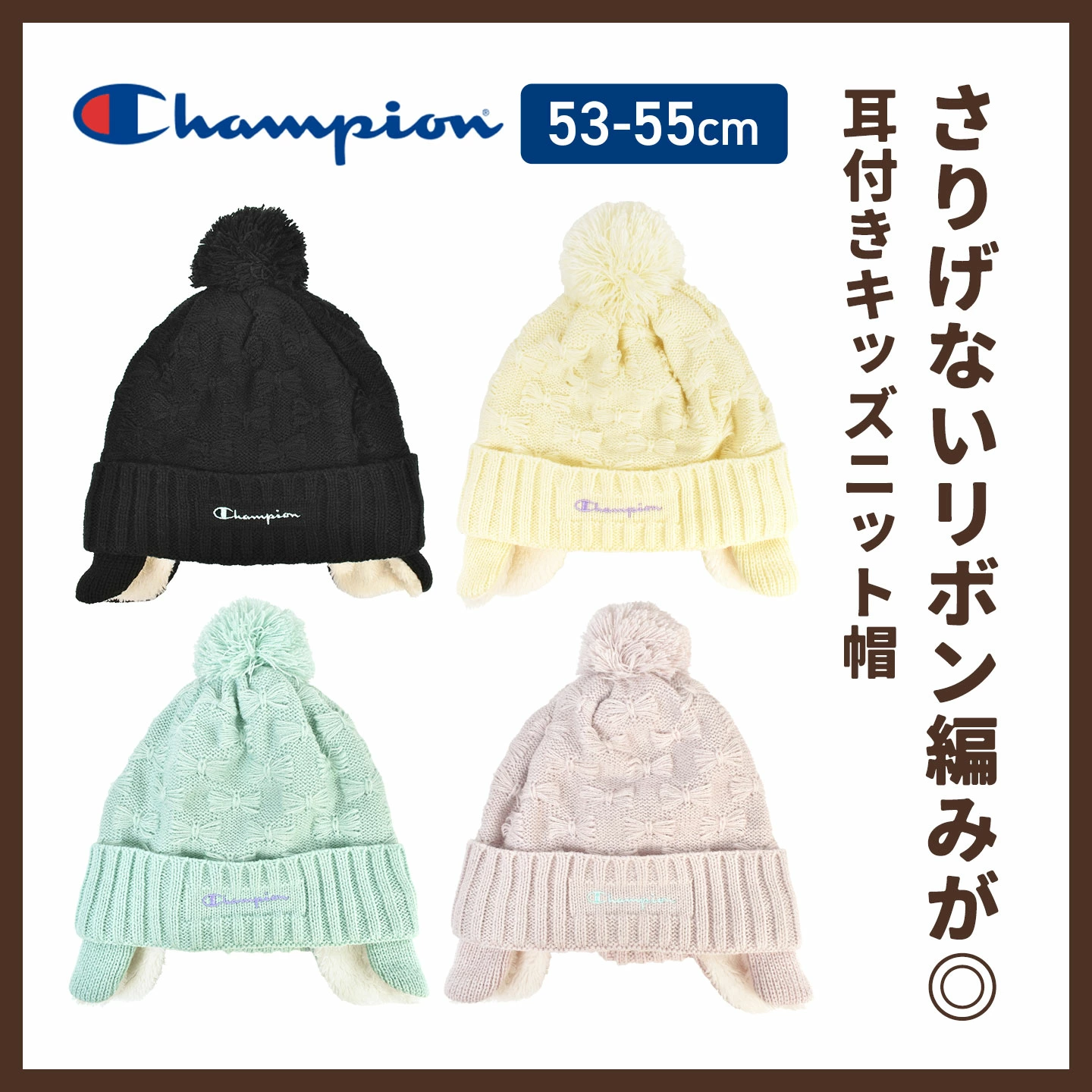 【リボンジャガード耳付きワッチ】リボンジャガードがとってもかわいい!Championの耳当て付きキッズニット帽。お顔が当たる内側部分は毛足の長いふわふわしたボア生地で被り心地も見た目もあたたか♪耳当て付きで真冬の通園通学やおでかけにもぴったり!保育園児から小学校低学年におすすめです♪