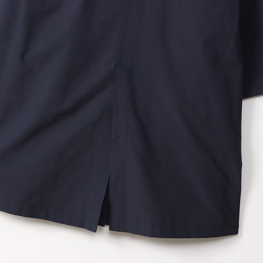 【DETAIL】・環境に配慮されたリサイクルポリエステルとコットンの混紡糸による生地を使用した、ソフトな風合いのロングジャケットです。・ややAラインのシルエットで特徴的なステンカラータイプ。・長いシーズンに対応できるよう、内側の切替え部分のみコットン100%の裏地を付けました。・春から秋まで一枚あると便利なアイテムです。左胸に生地と同色のCロゴ刺繍入り。