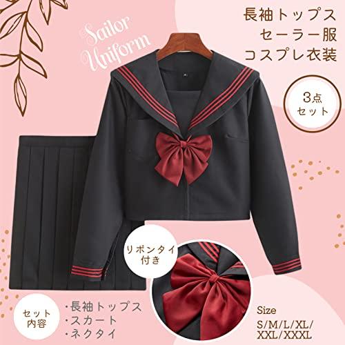 コスプレを楽しめる黒のセーラー服です!長袖トップスとプリーツスカートで、奥ゆかしいお嬢様感の漂う学生服です。XXXLの大きいサイズまで、幅広くご用意しました!ジャストサイズが見つかります。 清楚なJKスタイルで、甘酸っぱい青春がよみがえります。リボンタイはキレイな形に整えられていて、取り付けカンタンです。しっかりした素材で丁寧な縫製の高級感のある仕上がりで、撮影やSNSに向いています。 ブラックのセーラー服にエンジカラーのリボンタイ付きで、昔懐かしいタイプの学生服です。ピュアではにかんだ笑顔が似合う定番の女子高生スタイルです。あの頃の美しい思い出にたっぷりと浸ることができます! 屋外でのイベントや寒い時期のハロウィンなどでも安心の、長袖タイプです。動きに合わせてゆらゆらと揺れるプリーツスカートが、かわいらしさバツグンです。着心地のいいポリエステル素材です。 身体ラインにやさしくフィットして、着脱がカンタン。清純派デザインの制服。【セット内容】:リボンタイ、長袖トップス、スカート【サイズ】:S,M,L,XL,XXL,XXXL【素材構成】: 主にポリエステル繊維