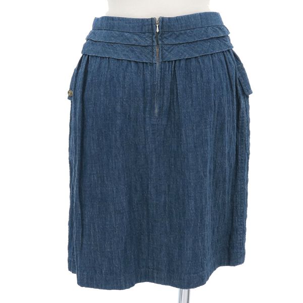 ■採寸#36 W:68cm H:102cm 着丈:48cm■素材表地:コットン99% スパンデックス1% 裏地:シルク100%■コメントシャネルから06Sスカートが入荷しました!両サイドにあしらわれた大きなポケットと、左サイドのココマークプレートがアクセントになった、カジュアルながらも上品さを感じるデニムスカートです☆全体にデニム生地特有のスレや褪せ、裾のヨレ、ウエスト右側糸ほつれ、ウエスト下中央・右ポケット蓋・スカート中央やや右に茶シミ、ジッパーつまみに若干のスレ、プレート留め糸の飛び出し、タグ印字掠れが見受けられる為Bランクでのご紹介となりました。やや着用感が強めのお品ではございますが、着用時に目立つ程ではございませんので、普段着としては問題ない程度かと思います。お安くなっておりますので、気になる方はお気軽にお問い合わせくださいませ◎