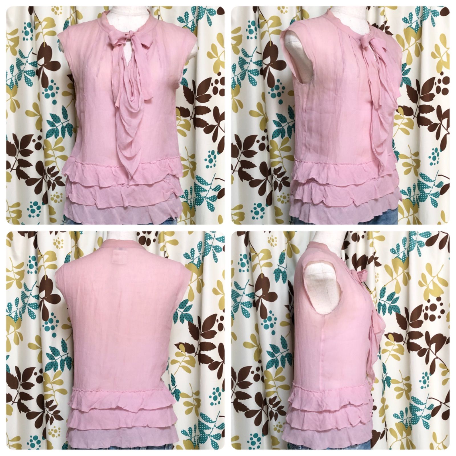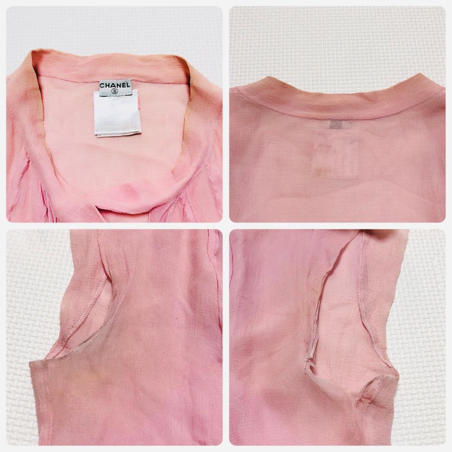 ■商品概要CHANEL シャネルシルク100%ボウタイブラウスフレンチスリーブ裾フリルレイヤードsize36(サイズS)フランス製ピンクレディースラグジュアリー ハイブランド 高級