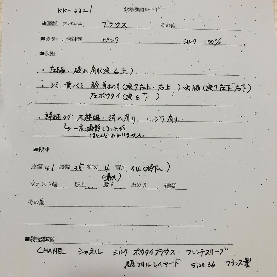 ■状態 ランクBCシワタグ不鮮明・汚れ左脇に破れ、シミ黄ばみ※写真6~7
