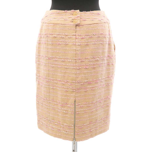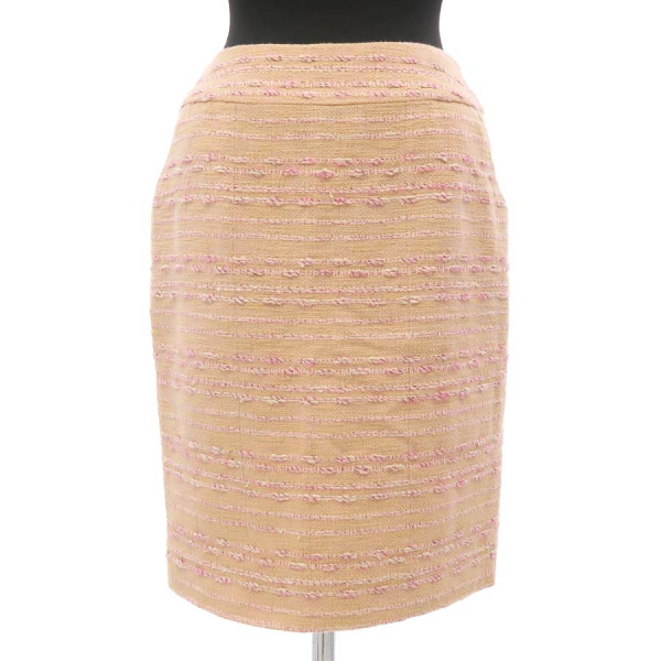 ■採寸#38 W68cm H92cm 着丈46cm■素材ウール44.2% コットン43.9% アクリル7.2% レーヨン3.2% その他繊維1.5%裏地シルク100%■コメントシャネルから99Aスカートが入荷しました!タグに印字薄れ、ウエスト裏全体の数箇所に薄汚れやアタリ、裏地ウエスト下や裾のチャック周り、裏地縫い目周り、前左ウエスト裏、タグ上などに裂けや糸引き、ジッパーにメッキ剥げや小キズ、スレ、くすみ、全体にシワや収納跡、ヨレ、起毛感があるためBランク評価になります。
