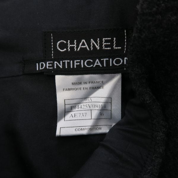 ■採寸#36 W64cm H90cm 総丈46cm■素材ウール100%裏地 シルク100%■コメントシャネルから99Aスカートが入荷しました!前身ごろ裏地中心ウエスト下や左ウエスト、右ウエスト下、後ろ身ごろ左ウエスト下、左側面ヒップ付近、右ジッパー横などに糸引き、右側面膝下や裾上にアタリなど裏地全体に糸引きやアタリ、ジッパー下に裂け、ジッパーつまみに塗装剥げやスレキズ、プレートに小キズやスレ、全体に起毛感やシワ、収納跡、ヨレが見られるためBランク評価になります。