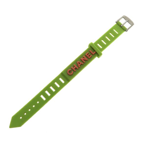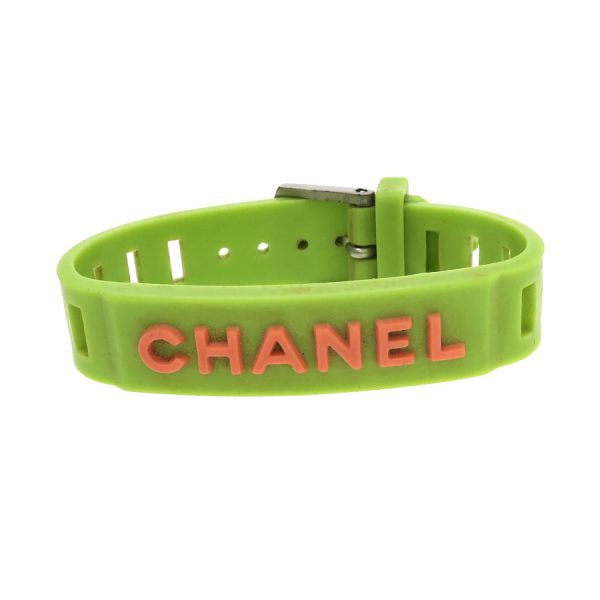 ■採寸全長:21.5cm(約16.5~19cmで5段階調節可) 幅:2.1cm■素材表記なし■コメントシャネルから99Pラバーブレスレットが入荷しました!立体的なCHANELのロゴが目を引く、90年代らしいポップでスポーティーなデザインが魅力のアイテム☆コーディネートのアクセントに最適です!全体に薄っすらと変色、溝や隙間などに汚れの付着、収納臭、金具のスレや小キズが見受けられる為Cランクでのご紹介です。お気軽にお問い合わせくださいませ◎