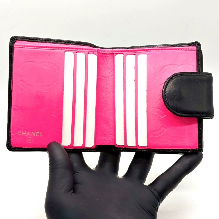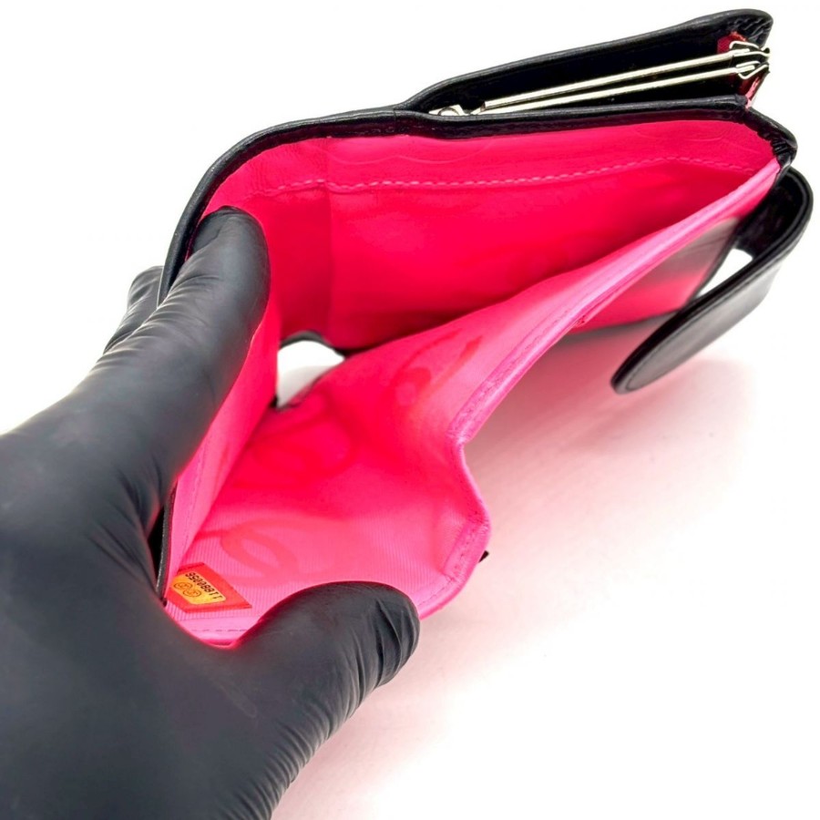 【商品説明】・象徴的なココマークが映える、カンボンラインの二つ折り財布。ブラック×ホワイトのコントラストに、内側のビビッドピンクがさりげない遊び心を添えます。手に収まるコンパクトさと実用性を兼ね備え、日常に“格”をプラスする一品です。