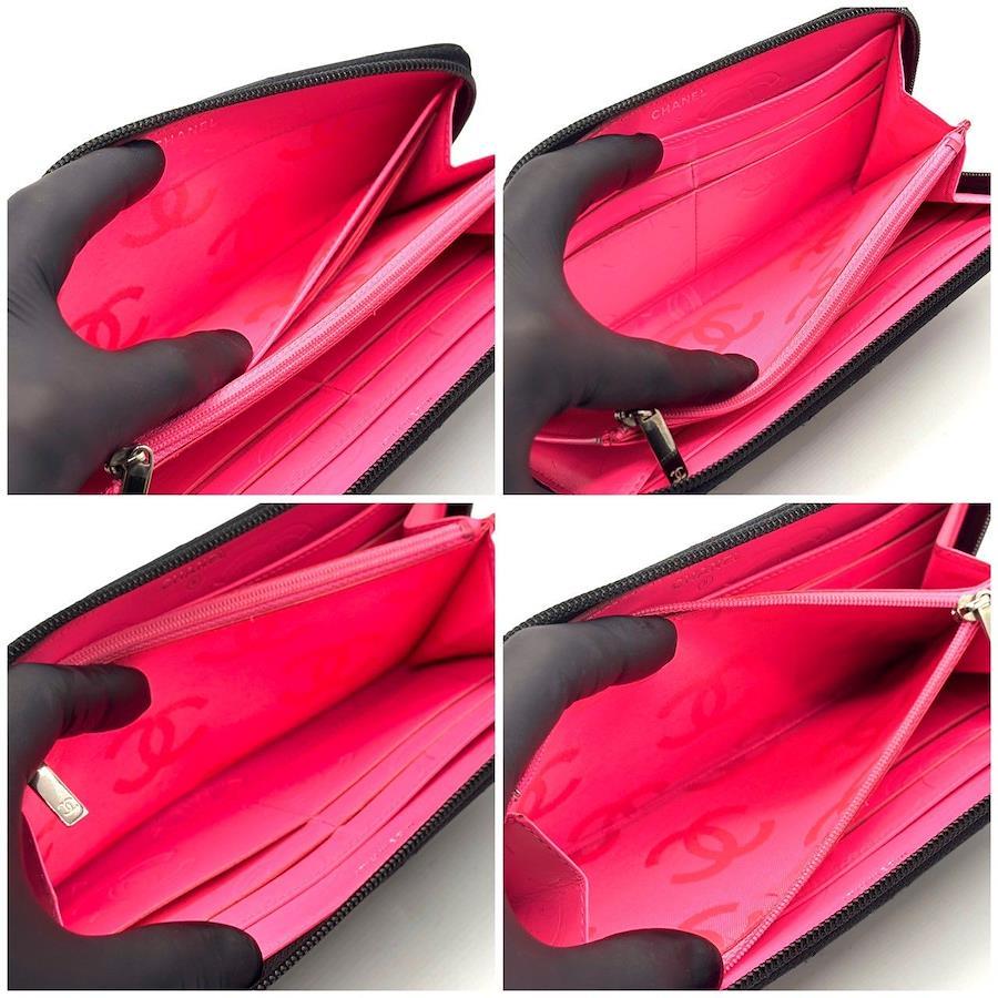 【商品説明】・シャネルの名作、カンボンラインのラウンドファスナー長財布。外はシックなブラック、内装は鮮やかなピンクというギャップが、持つたびに気分を高めてくれます。