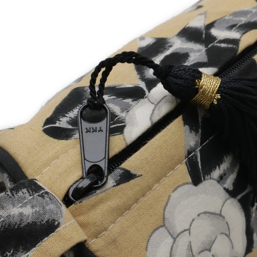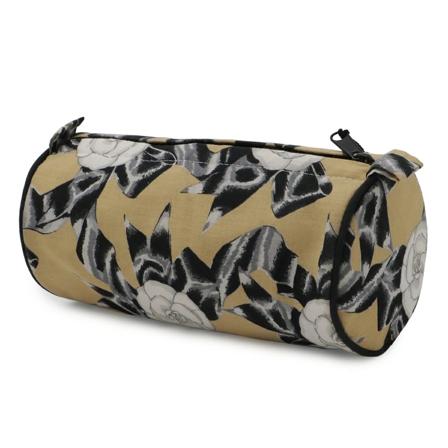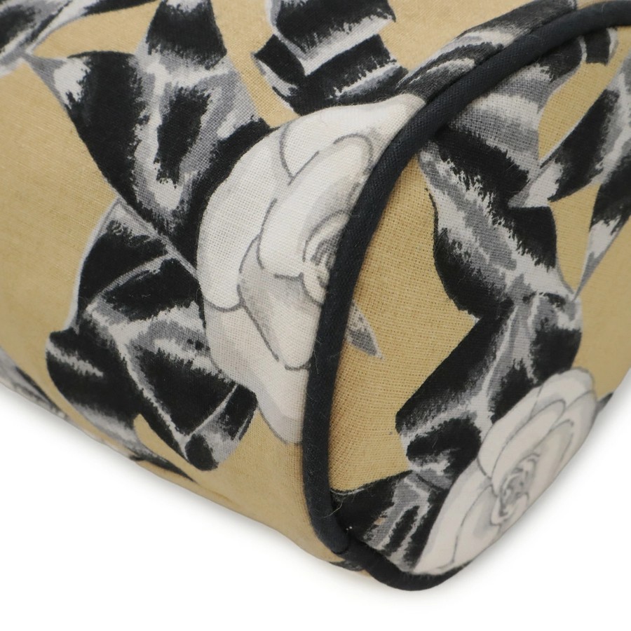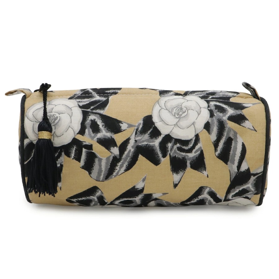 CHANEL Camellia Cylindrical Cosmetic Pouch, Makeup Pouch, Multi-purpose Pouch, Canvas, Novelty Item, Not for Sale, Black, Beige, White [Used]