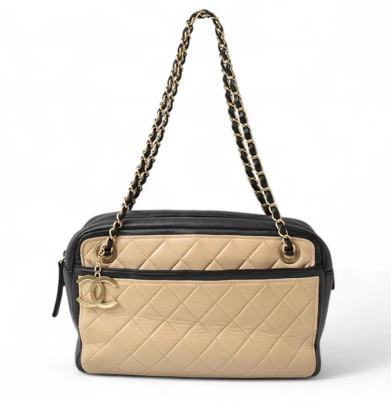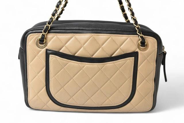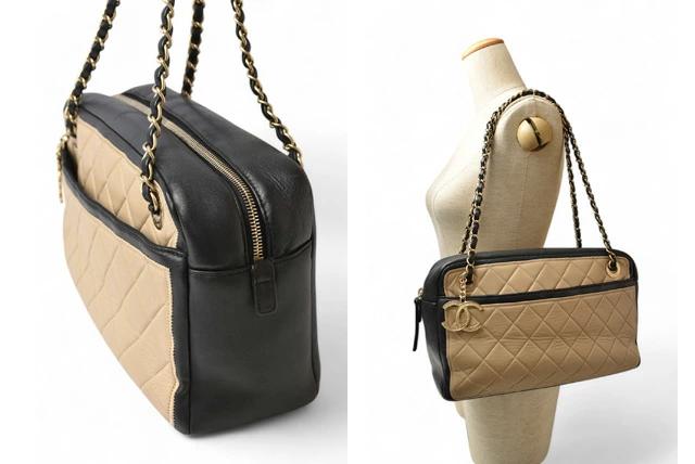 CHANEL バッグ バイカラー マトラッセ/キルティングステッチ ベージュ/ブラック