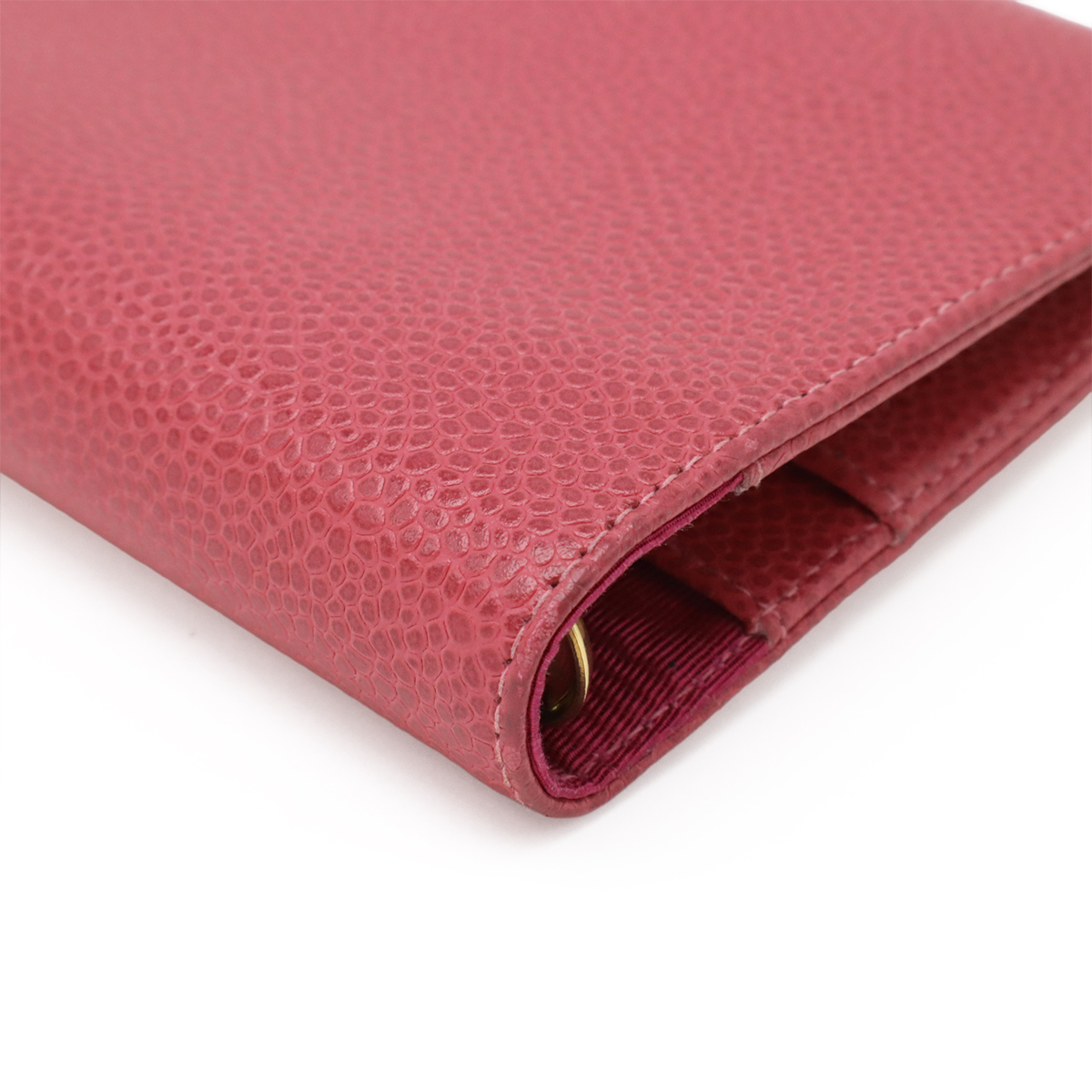 【商品説明】[サイズ]W10.5cm H14cm[材質]キャビアスキン[カラー]フューシャ[仕様]内側ポケット3、ペンホルダー1[付属品]ギャランティカード