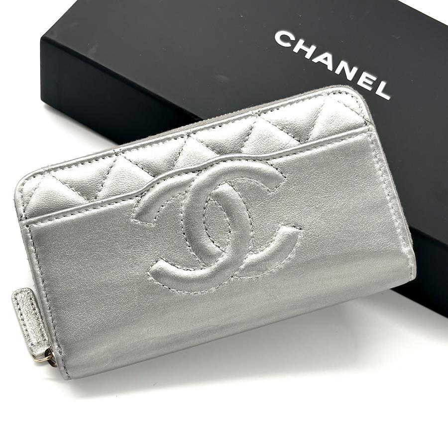 ★商品詳細★●商品名 シャネル マトラッセ ココステッチ ラウンドジップ ミディアム 財布●色 シルバー、シャンパンゴールド●付属品 なし(箱は付きません)●素材 本革、ゴールド金具●サイズ 約15.5×8.5×2.7㎝●シリアルナンバー 31195534●シリアルシール付●仕様 ファスナー開閉式、カードポケット×4、ポケット×4