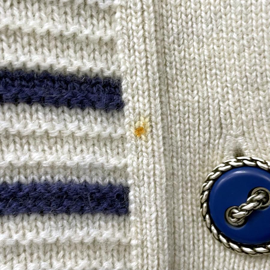 【商品状態】●首回り:良好●袖口:良好●ボタン:全てのボタンに剥がれアリ。●タグ:多少の繊維ほつれアリ。●その他:ボタン横にシミアリ。毛玉も多少ありますが、状態がよく良好なお品物です。