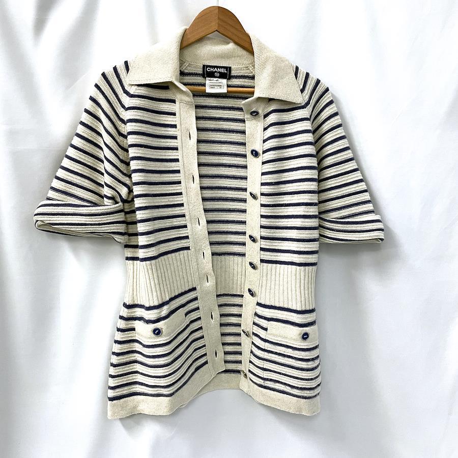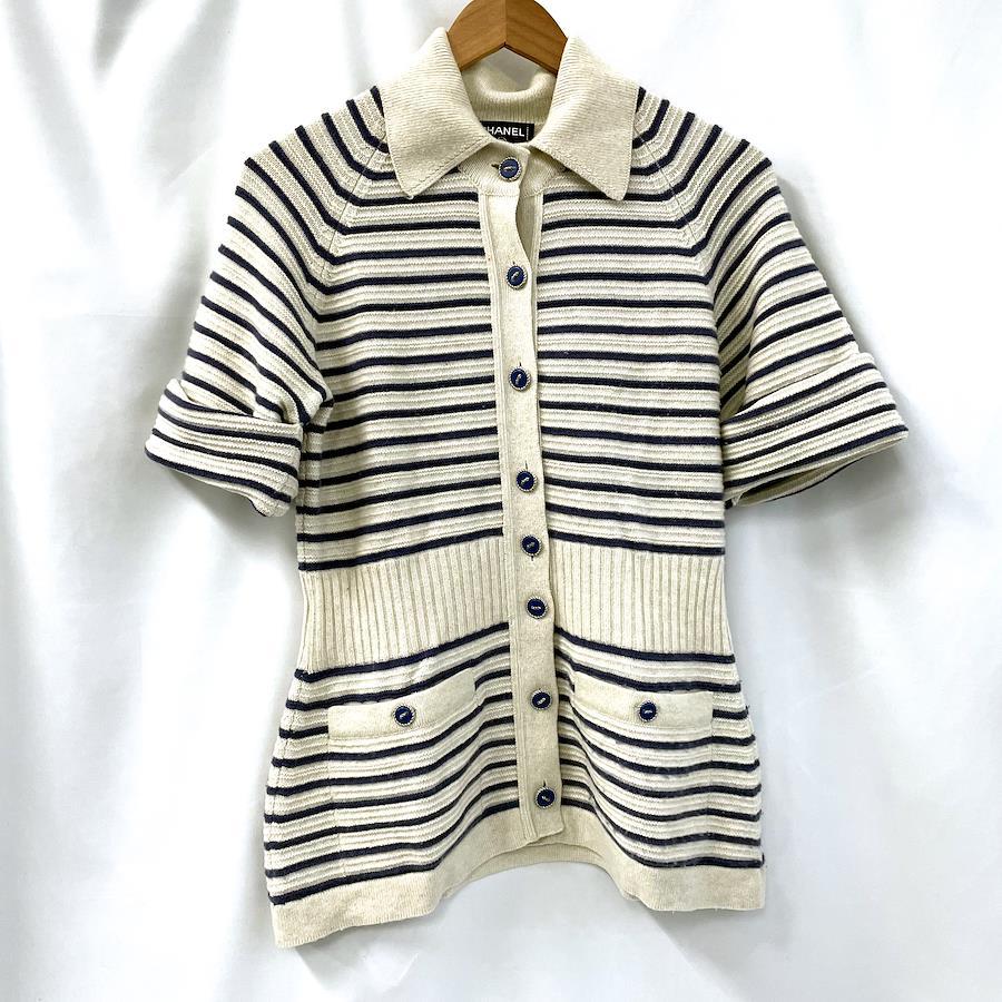 #CHANEL#シャネル#ニットワンピース#半袖ニット#カシミア#ホワイト#ネイビー
