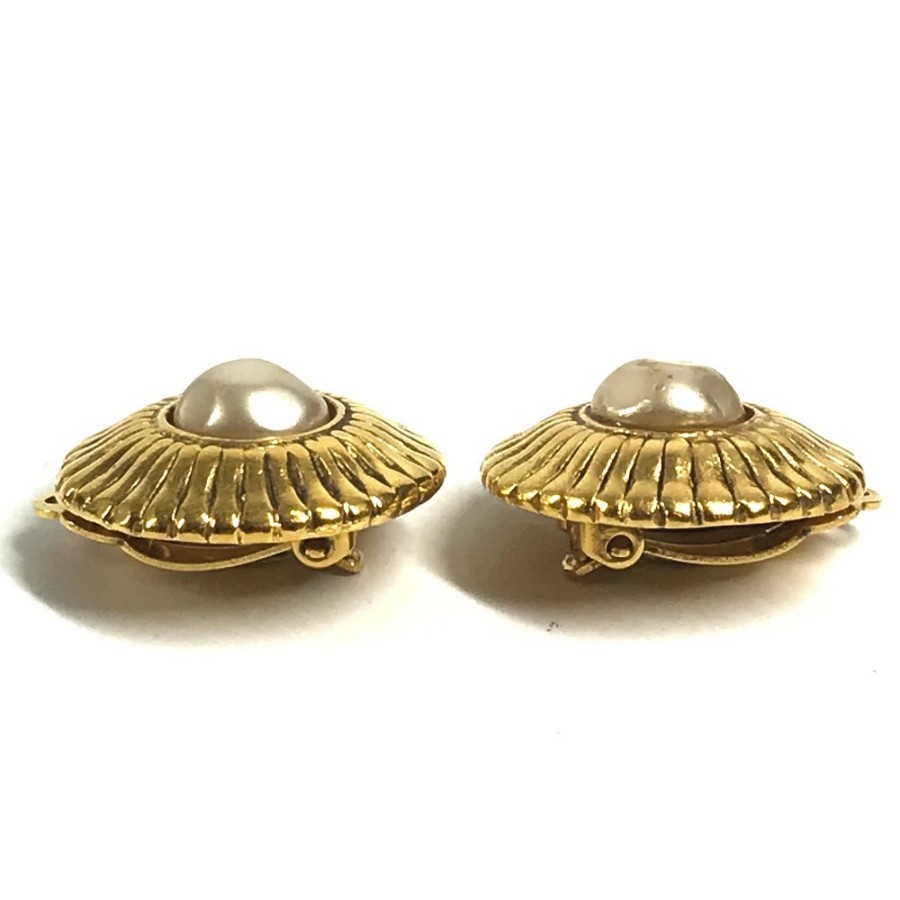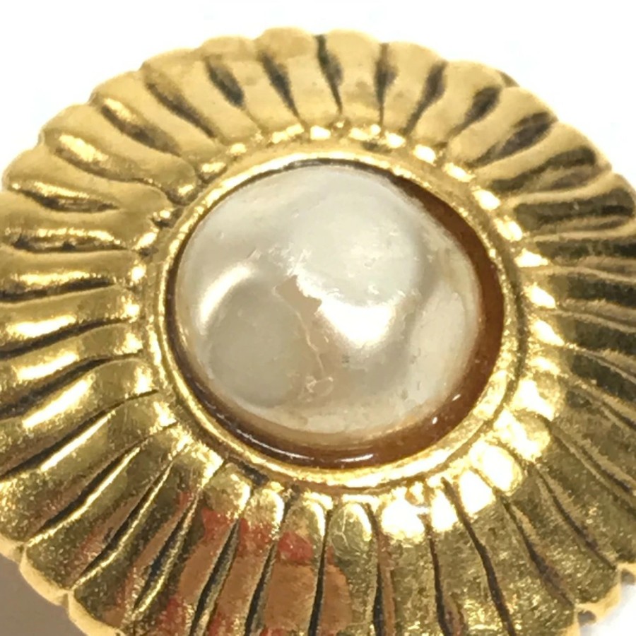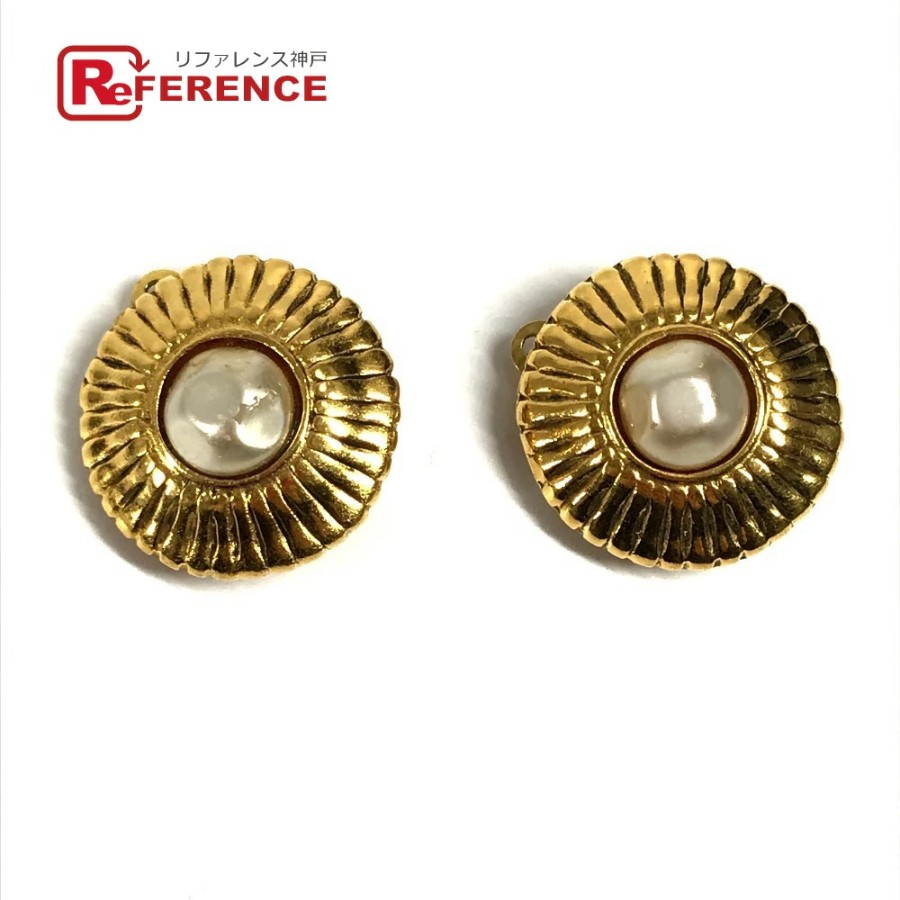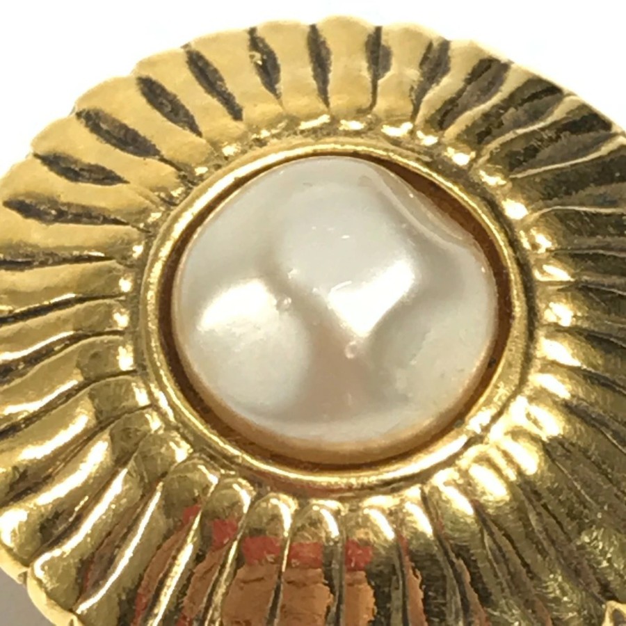 CHANEL Vintage Faux Pearl Earrings, Metal, Gold, Women's [Pre-owned]